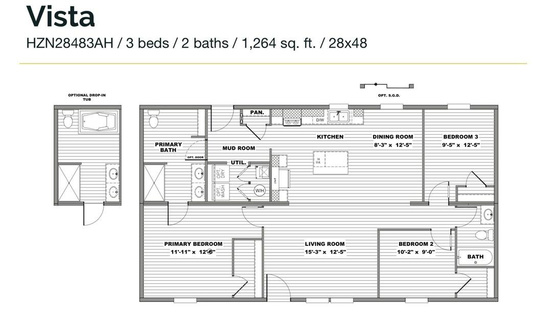 3 Bed 2 Bath. Size 28×48